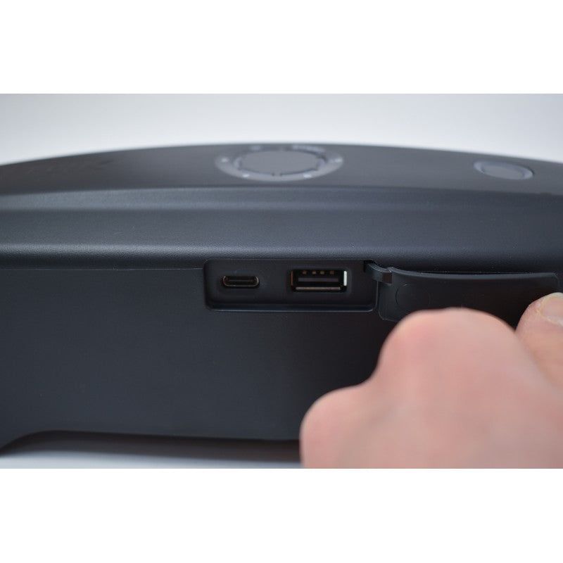 • Saídas USB-C e USB-A para carregar dispositivos portáteis